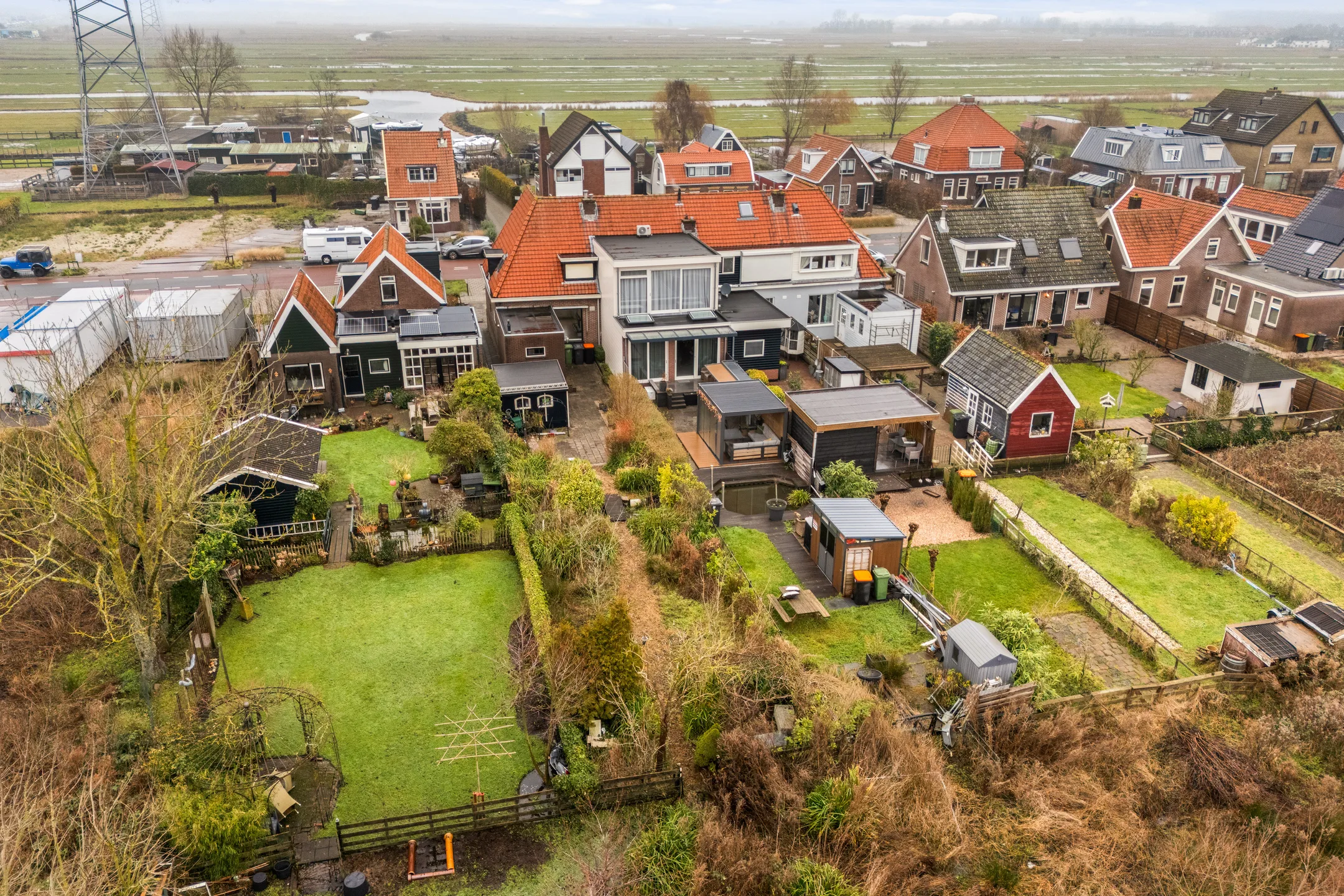 - Er is een eigen parkeerplaats in de voortuin en een vrijstaande berging in de achtertuin;